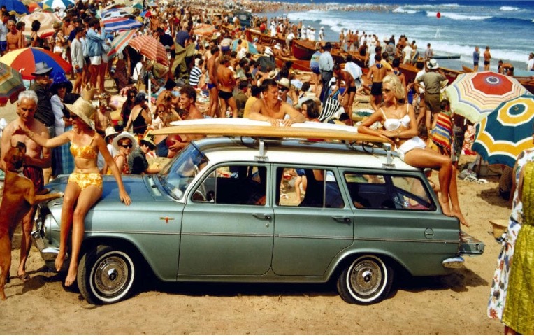 Music could only become an ‘industry’ by redefining what an industry was. Industry, more or less equated with manufacture, used to mean integrated systems for the production and distribution of goods for need (demand) and profit. The decline of traditional manufacturing and the growth of the service sector shifted the weight of ‘industry’ from factory-based production to home-based consumption. So too the emphasis moved from needs to wants, or desires. In the 1970s it would have been the Holden car in the picture above that spoke ‘industry’. In the 1990s it’s the beach party, consumers and their desires that count, the Holden becoming simply a stylised life choice amongst others. Music and the cultural industries were about desire, and as we all know desires are endless. You can have too many cars, but never too much music.